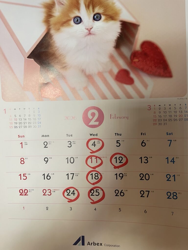 1月のカレンダーです!2026